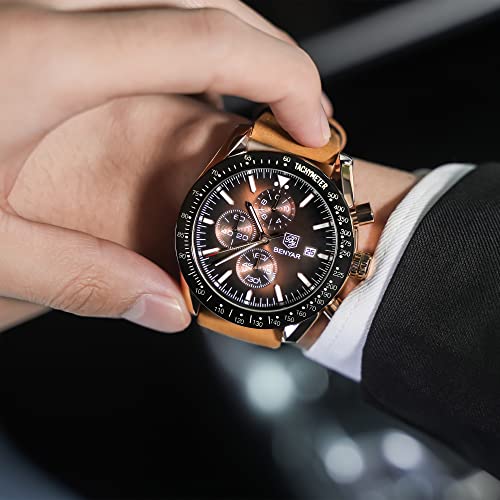 BENYAR Men’s Watches WatABENYAR Montre Homme / Men’s Watches Waterproof Sport Military Watch for Men Multifunction Chronograph Black Fashion Quartz Wristwatches Calendar with Leather Straperproof Sport Military Watch for Men Multifunction Chronograph Black Fashion Quartz Wristwatches Calendar with Leather Strap