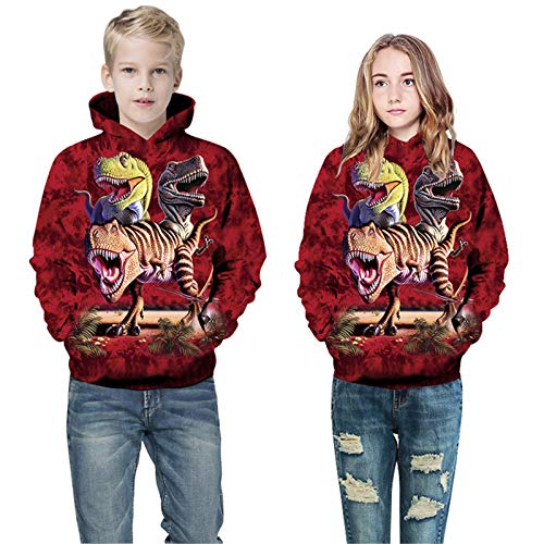 JSJCHENG 3D Dinosaur Print Hoodies for Boys Women Children Hooded Pullover Sweatshirts 4-15 Years