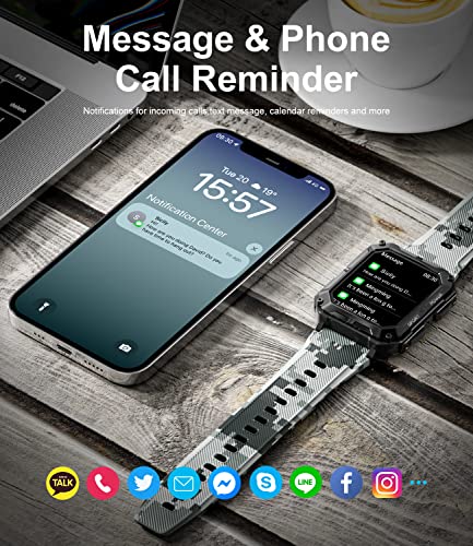 ⌚【Sleep Monitoring】Military smart watch men for android and ios can also automatically track your sleep, analyze your sleep quality through deep sleep, light sleep and get up, so that you could better be mindful your sleep quality and let you form a more healthy way of life.