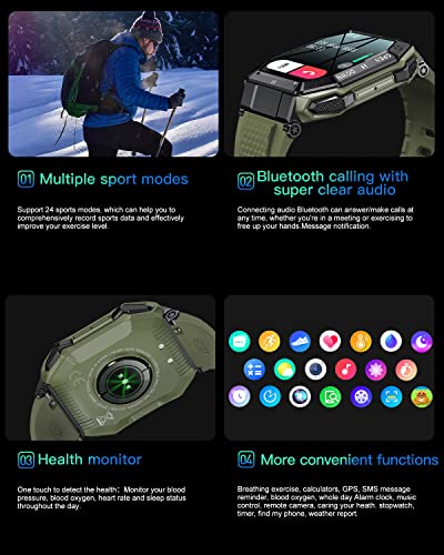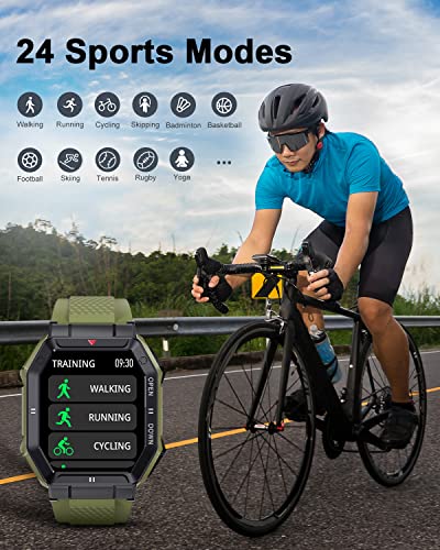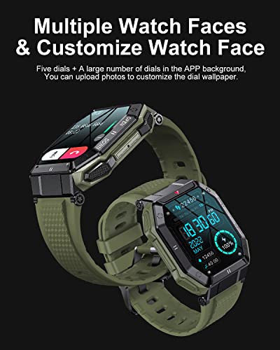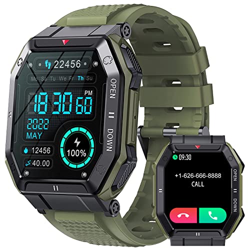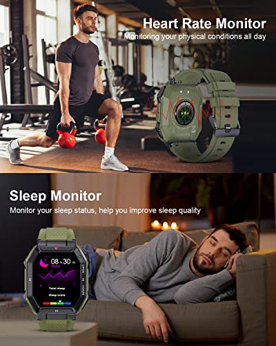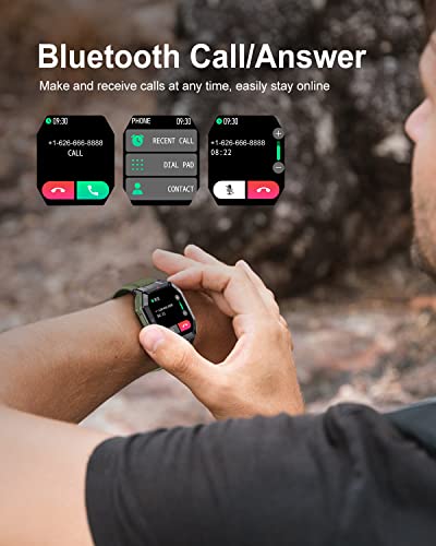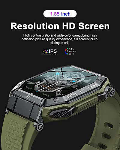 LIGE Smart Watch for Men Bluetooth Answer Call/Smart Notification,1.85 Inch Touch Screen Outdoor Military Fitness Watch with Heart Rate Monitor,IP67 Waterproof Smartwatch for iOS Android,Green