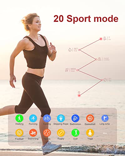 🏃【20 Sport Modes & 5ATM Waterproof】Women smart watch comes with 20 indoor and outdoor sports modes, can be connected with mobile phone’s GPS and records your daily activity data such as steps, calories, distance and activity time. And you can use the stopwatch tool to time your run. IP67 waterproof smartwatch can meet your daily waterproof requirements, but not soak in water for a long time