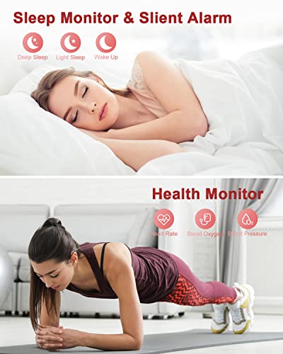 💕【Health Tracker & Sleep Monitoring】Fitness tracker for women detect your 24/7 real-time heart rate/SpO2 and sleep status, also You’ll get a health report within the app. It analyzes your health status in real-time, and helps you adjust to a healthy way of life. You’ll also use Drink Reminder and Sedentary Reminder features that will help you make reasonable adjustment. Warm reminder: the entire above data is for reference only and can not replace medical remedy