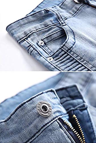 OBT Boy’s Slim Moto Biker Skinny Ripped Distressed Stretch Fashion Fit Denim Jeans