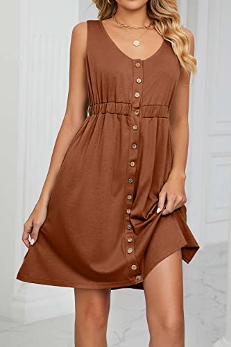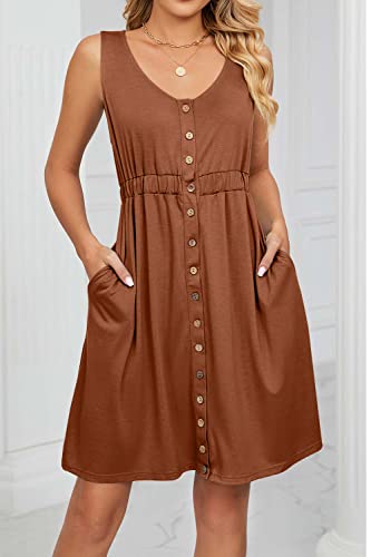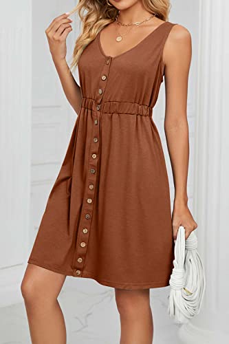 Features:Above knee length, Front pocket, button down, sleeveless, Stretchy, loose fit, high waist, V neck tank dresses.