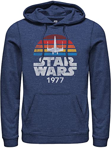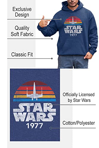 STAR WARS 1977 Logo Rainbow X-Wing Fighter Adult Men’s Sweatshirt Graphic Hoodie, Navy Heather, Small