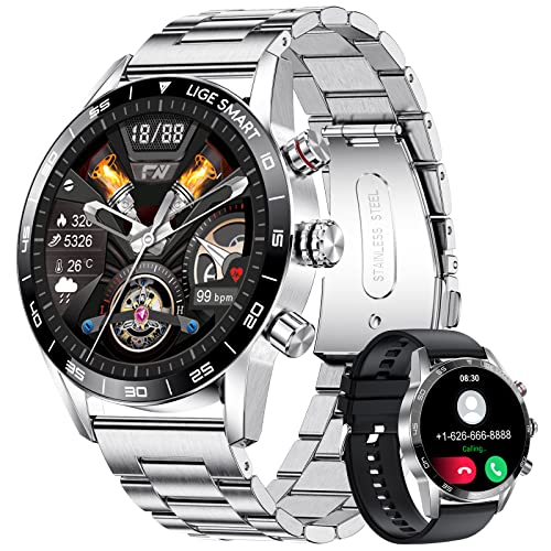 SUNKTA Smart Watch for Men,Bluetooth Calls, 1.32″ HD Touch Screen Fitness Tracker with Blood Pressure/SpO2/Heart Rate/Sleep Monitor,IP67 Waterproof Smartwatch for Android iOS Silver