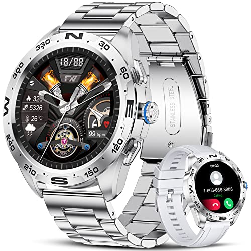 SUNKTA Smart Watches for Men, Smartwatch for Android and iOS Phones with Bluetooth Calls 1.32″ Full Touch Screen Activity Tracker Heart Rate Sleep Monitor IP67 Waterproof Pedometer, Silver