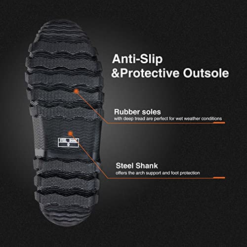 【Durable & User-Friendly】To offer added toughen and sturdiness to the only real, TideWe neoprene rubber boots installed a steel shank between the insole and outsole of the boot. The reinforced rubber shell also offers extra protection at the toe and heel of the boot. The pull-on and kick tab allow for simple off and on to get you out the door quicker.